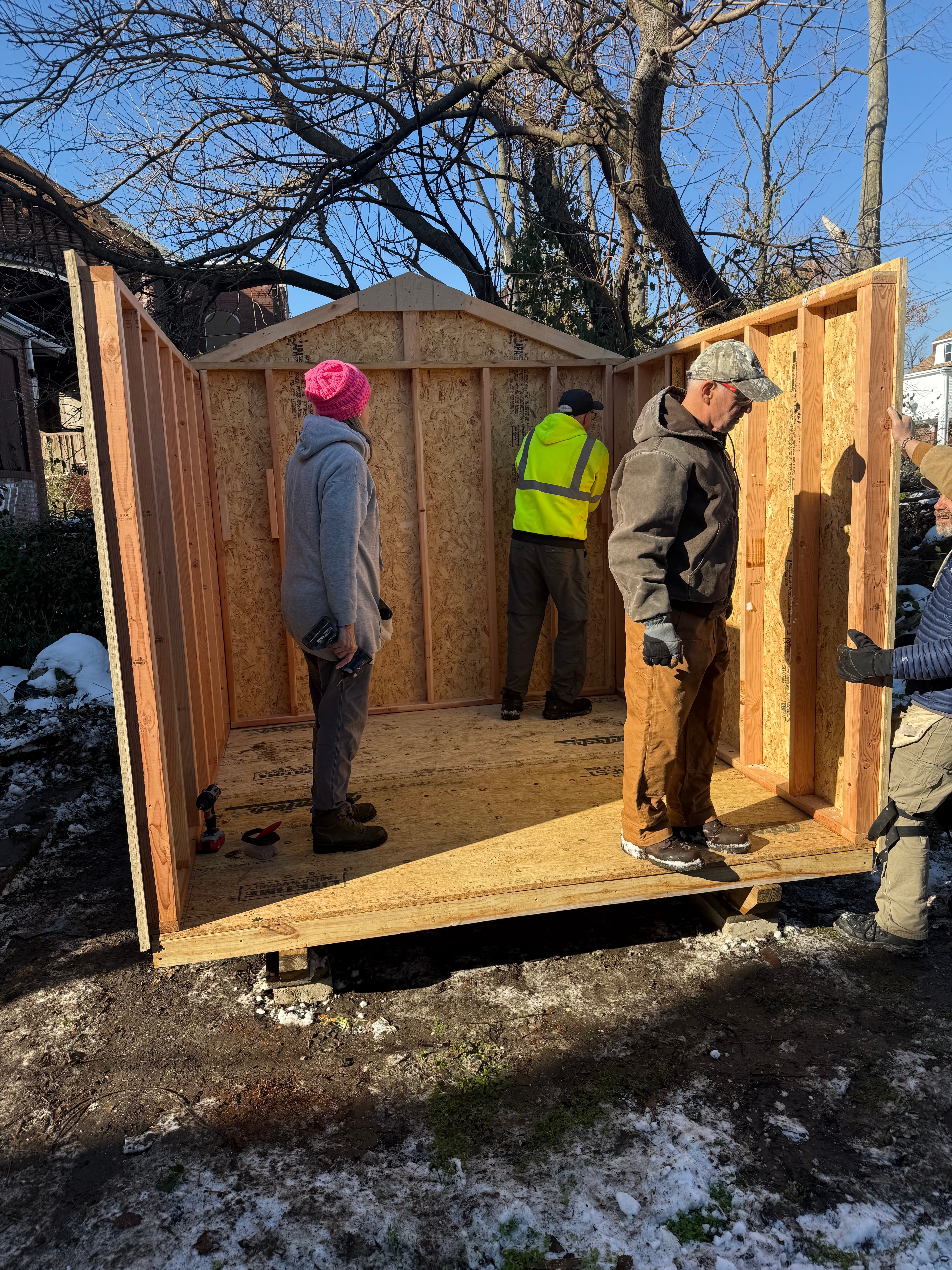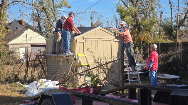 MNA Disaster Response continues to deploy Sheds of HOPE to urban St Louis MO. Cold weather has set in, but teams are wisely picking out warmer days, when available, to setup Sheds of HOPE. So far, MNA has sent 14 Sheds of HOPE kits from the MNA Charles H. Jones Family Disaster Response Center and the MNA John Browne Family Disaster Response Center. Here are a few recent pictures of teams setting up sheds.