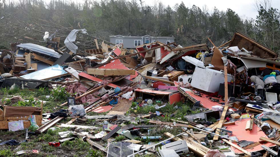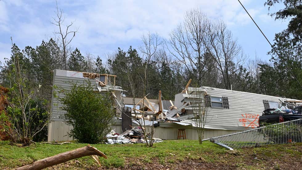 At least five were left dead in AL on Thursday, March 25, after a severe weather outbreak in the south that spawned several tornadoes. Five deaths occurred in Calhoun County, just east of Birmingham. Four of the victims lived in Ohatchee, where significant damage occured; the fifth victim was killed in a mobile home in Wellington. At least a half dozen tornadoes were confirmed in AL, while one was confirmed in MS and another in TN. The next day the National Weather Service declared a tornado emergency for Newnan, GA, about 35 miles southwest of Atlanta.