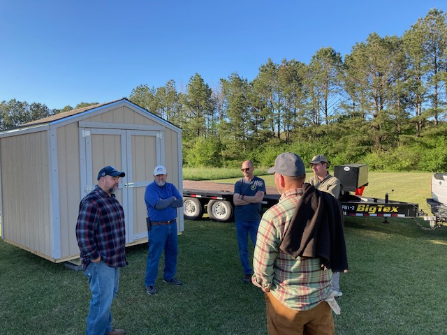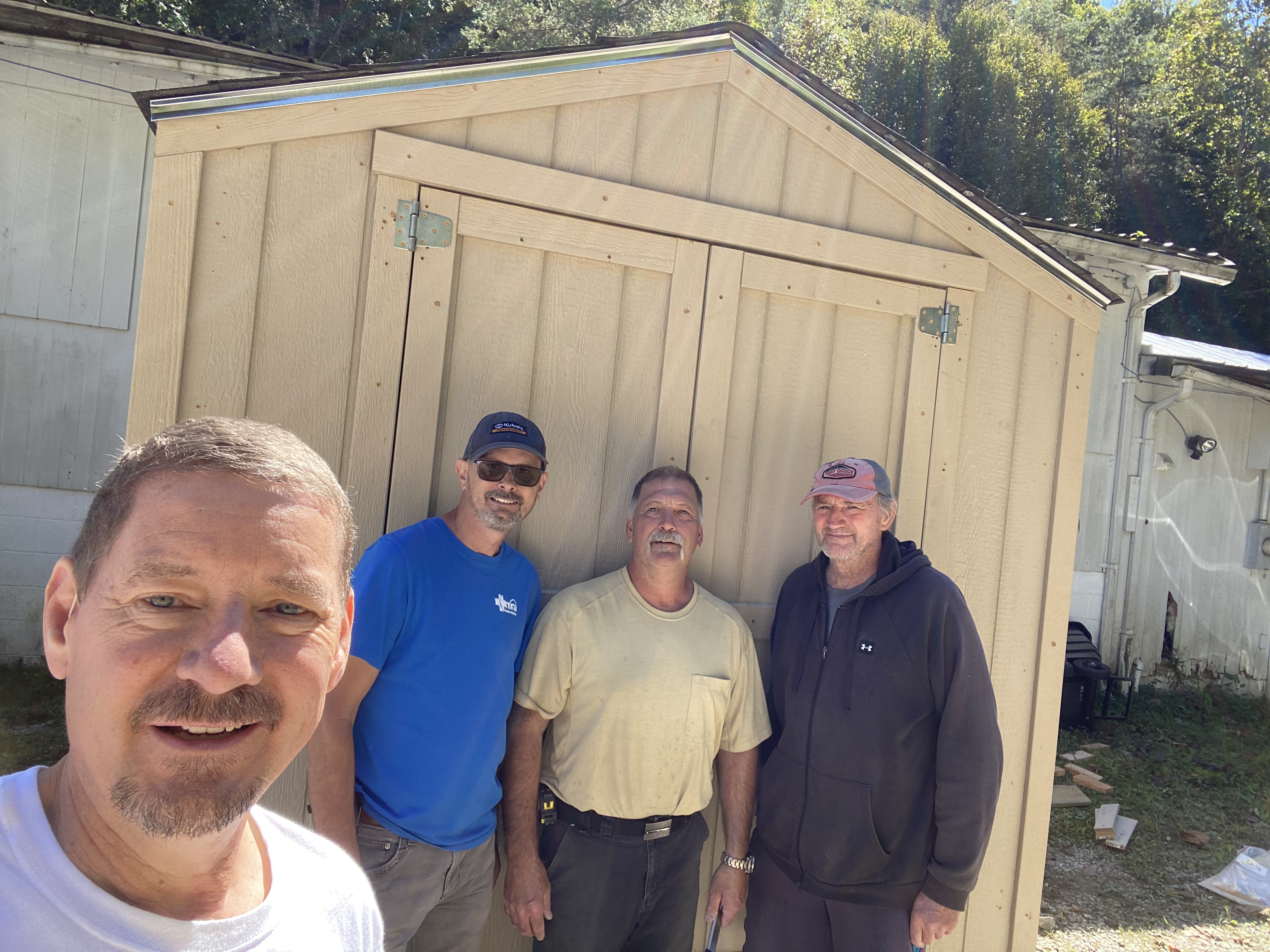 On October 26-27, Mike Kennamer transported the first Shed of Hope from the Charles H. Jones Family Disaster Response Center in Rome, Georgia to Neon to train a team of volunteers to assemble the kits. This shed kit, built by Lake Oconee Presbyterian Church in Eatonton, Georgia, was constructed for the purpose of providing tool storage for the work teams.