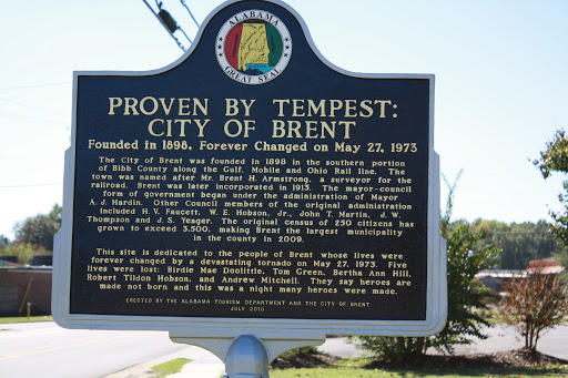 This isn’t the first historic-strength tornado that has crushed Brent. On May 27, 1973, a category 4 tornado tore through the Brent, Centreville, Montevallo, and Greensboro area, leaving 90 percent of the city of Brent destroyed. The tornado demolished more than 12,000 acres of timber and over 500 buildings; 72 people in the area were injured and five of its citizens killed. The thoughts and fears of that dreadful day were still lingering with the citizens of Brent and were pushed again to the forefront when the March 2021 tornado occurred. The City of Brent was founded in 1898 but was forever changed on that day in 1973. A site next to the current City Hall building was dedicated to the people of Brent whose lives were devastating by the powerful tornado. Five lives were lost: