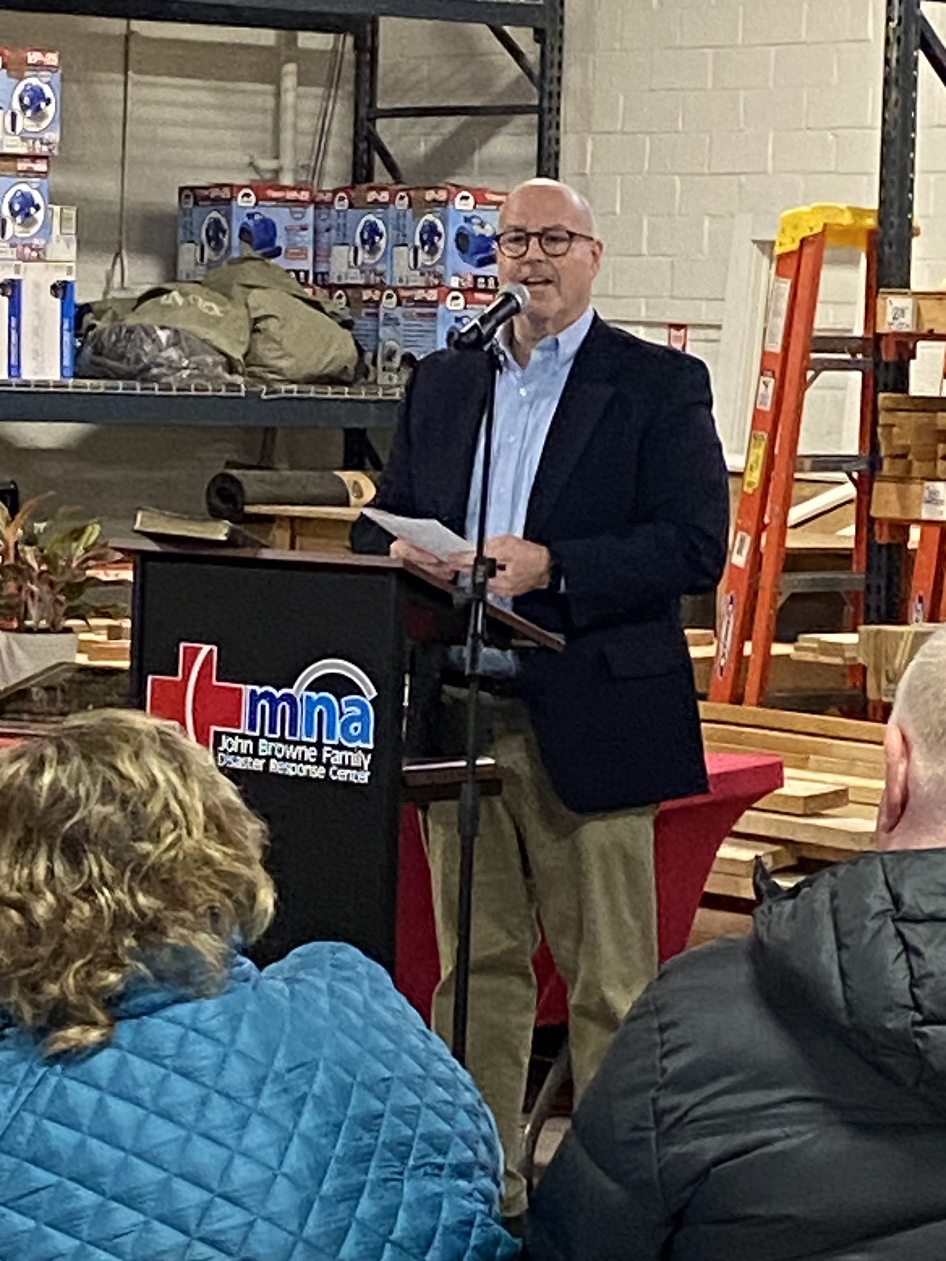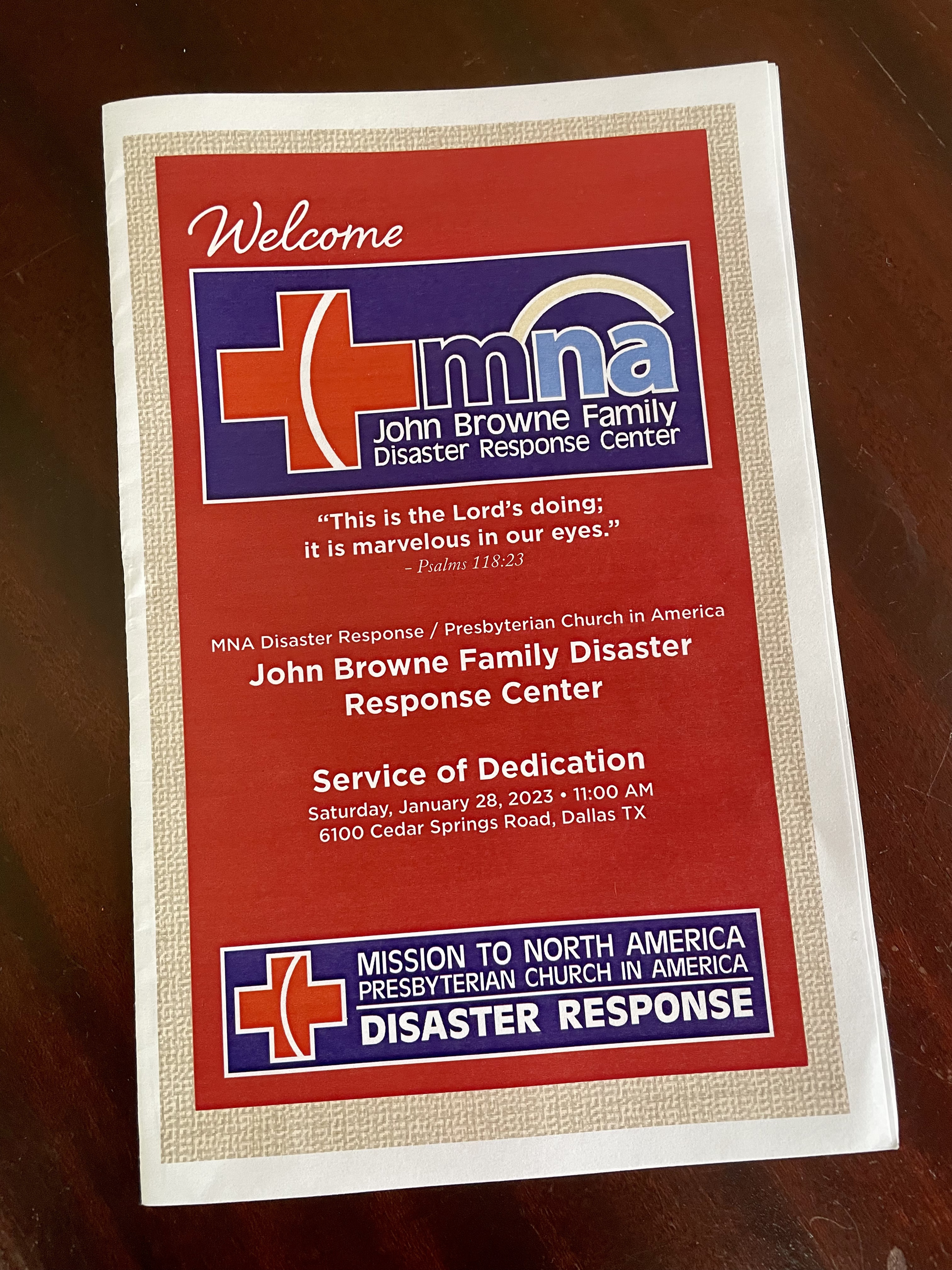 On January 28 a wonderful celebration was held in Dallas TX! MNA Disaster Response dedicated the MNA John Browne Family Disaster Response Center to the glory of God! Several area pastors took a part in the dedication service including Bill Lovell from MetroCrest PCA in Carrolton TX, Anton Heuss from Bethel PCA in Dallas TX, and Patrick Poteet from Christ Community PCA in Frisco TX. Pastor Poteet challenged us with a homily focused on delivering mercy to the tempest-tossed.