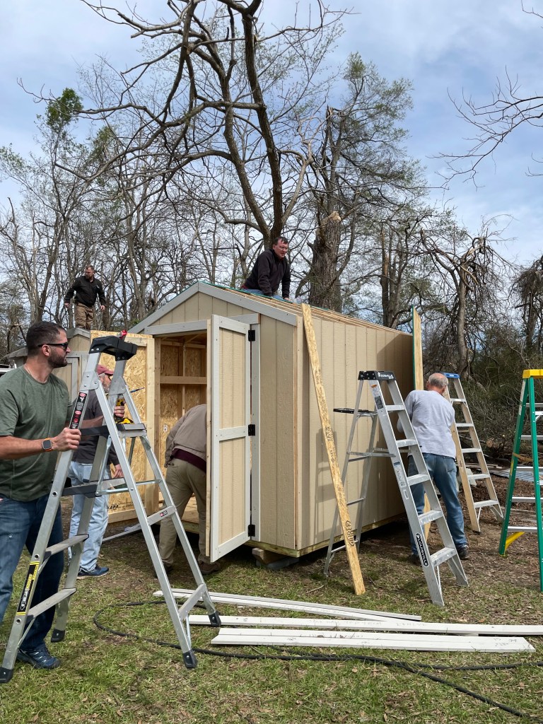 Over the next few weeks, our teams will be concentrating on chainsaw work, tree and debris removal, and evaluating the need for Sheds of Hope. If our site managers signal that Sheds of HOPE are needed, we are ready to deploy. We currently have 20 sheds ready at the Rome Warehouse, 11 at the Dallas Depot, and several churches are ramping up production and have builds scheduled over the next few weeks.
