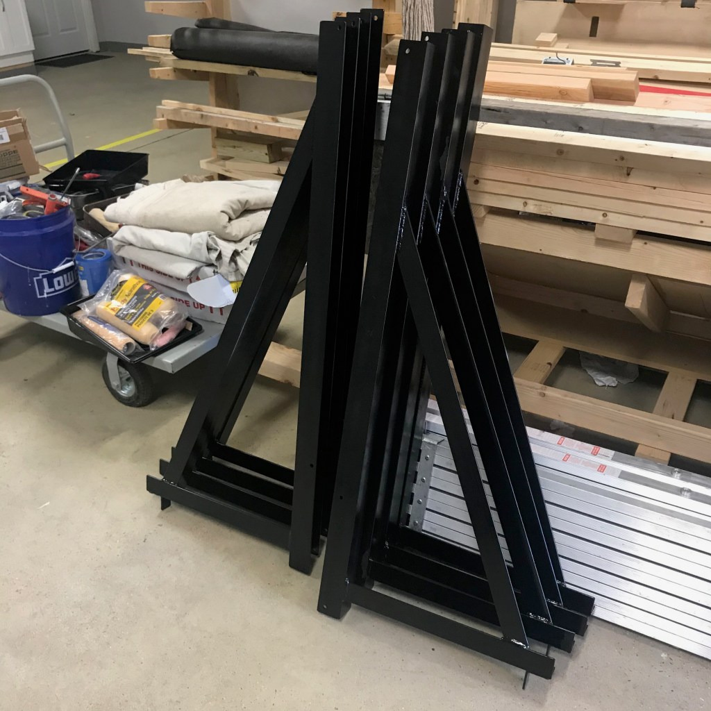 In the meantime we continue to plan and prepare, using the time we have been given to better equip for the future. One project we have been undertaking is fabricating wallboard supports. We temporarily fasten these to the 4 corners of a Shed of Hope while it is being assembled on a homeowner’s property to support aluminum walk-boards. The walk-boards permit volunteers to safely stand at an elevated level while roofing the shed.