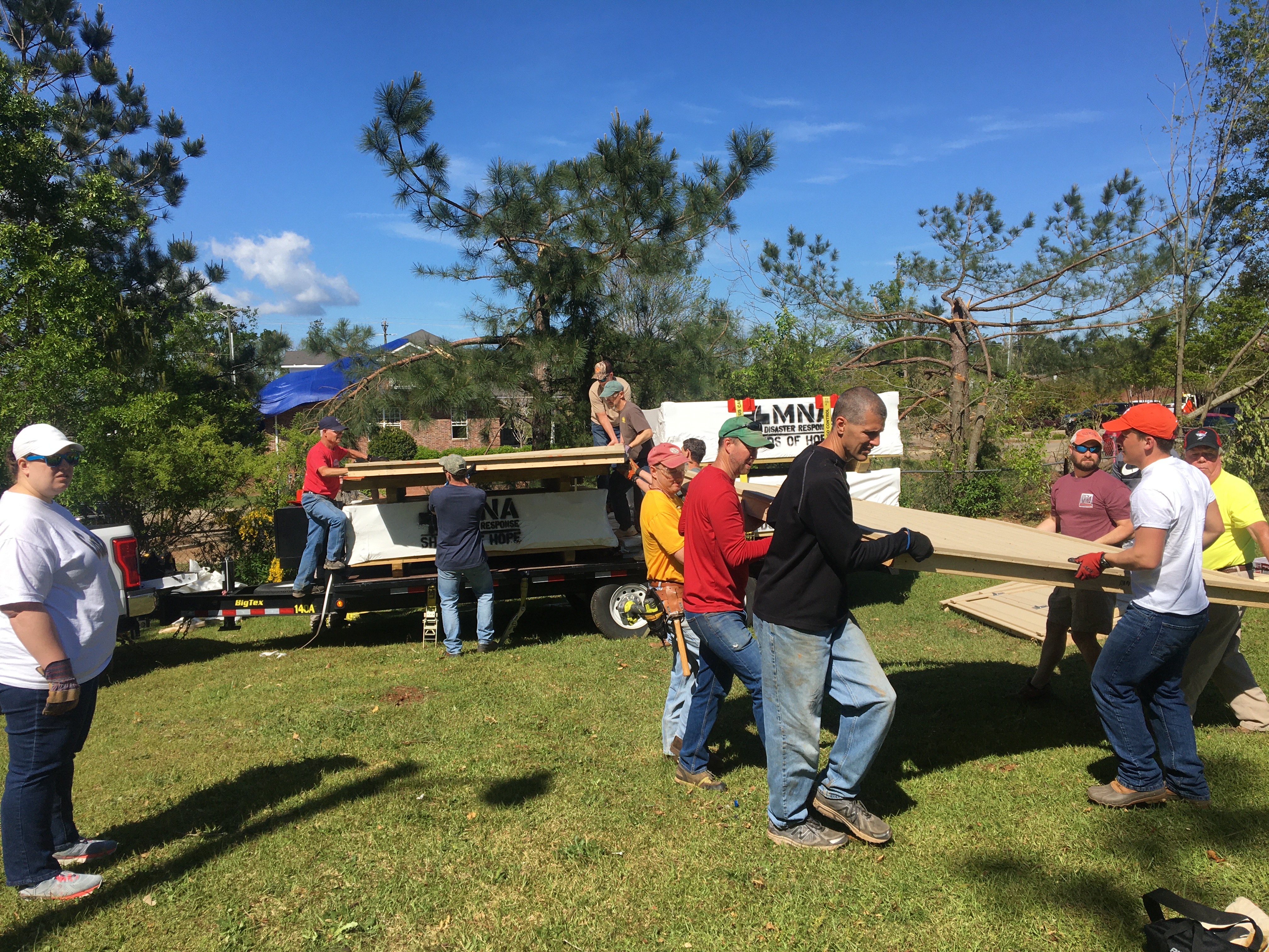 The first four Sheds of Hope were completed by the end of the day, and the homeowners were able to begin moving their recover personal belongings inside, now they can begin repairing their homes.
