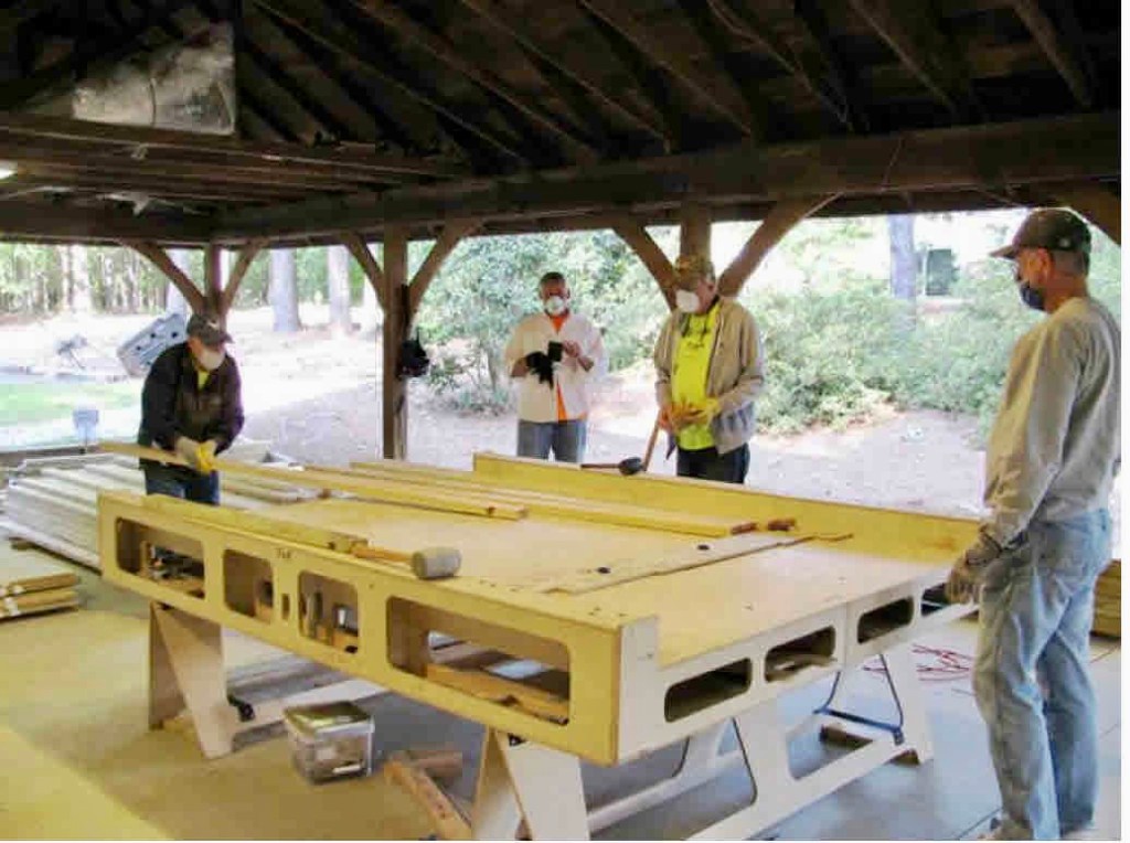 One day MNA Disaster Response, including Sheds of Hope, will be cleared to again mobilize volunteers. Meanwhile, our team of staff and volunteers have been investing massive amounts of time and effort preparing for that day, so that when it comes we may do so safely. Our network of relief providers have been innovative in finding ways to cautiously take steps during this time that will allow our teams to rapidly restart operations when it is safe. Take a look at the following pictures of a recent Shed of Hope build by Lake Oconee Presbyterian Church. They have been cautiously holding the line, complying with social distancing mandate, but staying busy staying on mission.