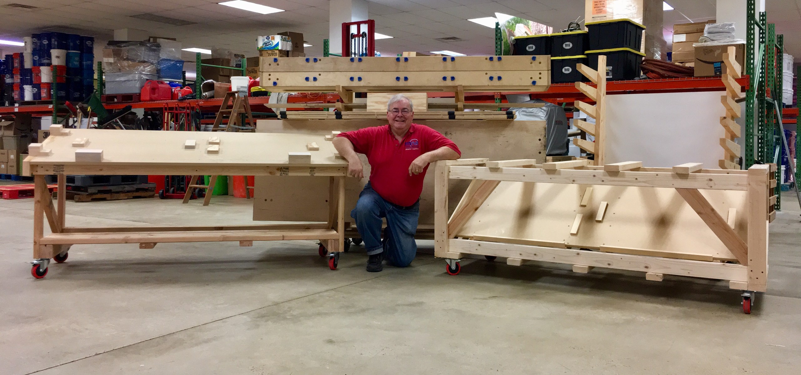 The MNA Disaster Response Warehouse in Rome, Georgia gets a new fleet of wheeled benches. I was able to bring a SmartBench from our Dallas Warehouse, outfit two supporting workbenches, enabling the three benches to work together for the pre-building of Sheds of Hope. We have all of these benches at our Dallas Warehouse, but this line got wheels so that they can be moved around the Rome Warehouse as needed. This will greatly help with layout and pre-building. We are going to schedule a training class late summer early fall. Dates for this training will be available soon.